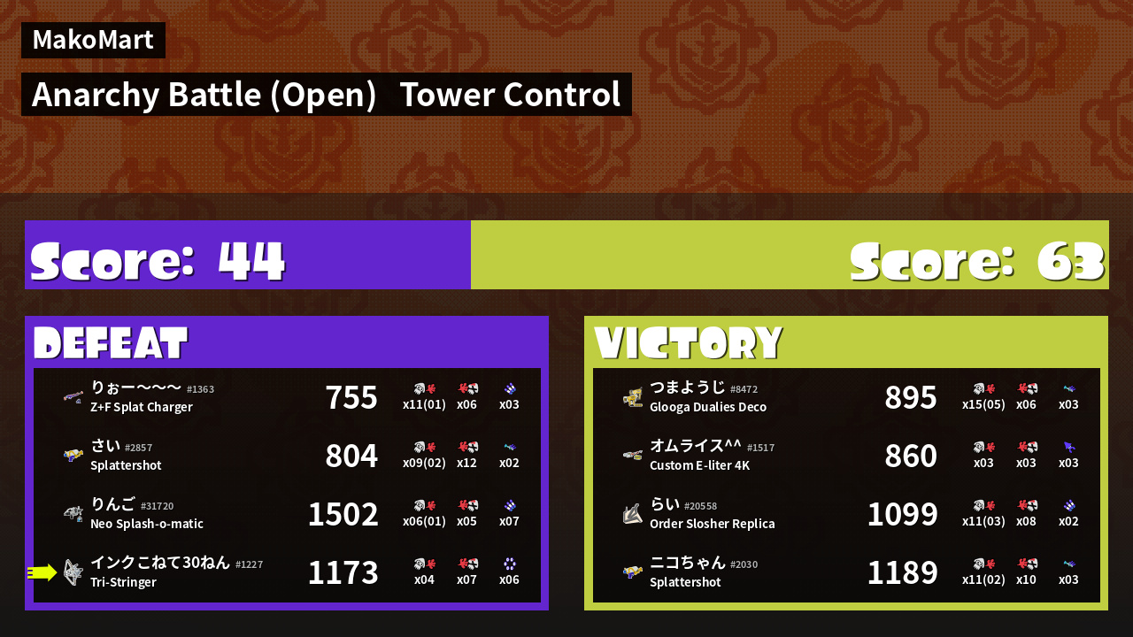 | Mode | Tower Control - Anarchy Battle (Open) | ||