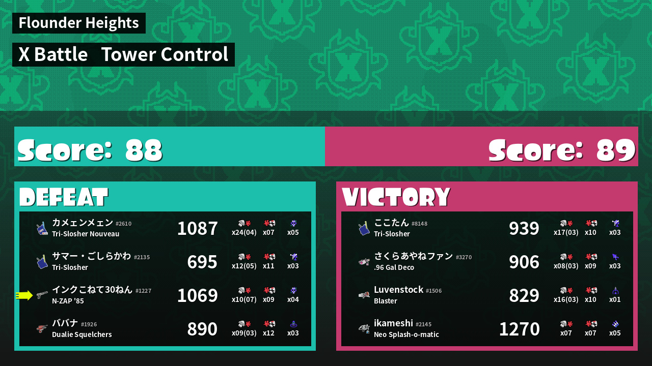 | Medals | #1 Splat Assister #1 Tower Stopper #1 Ground Traveler | ||
