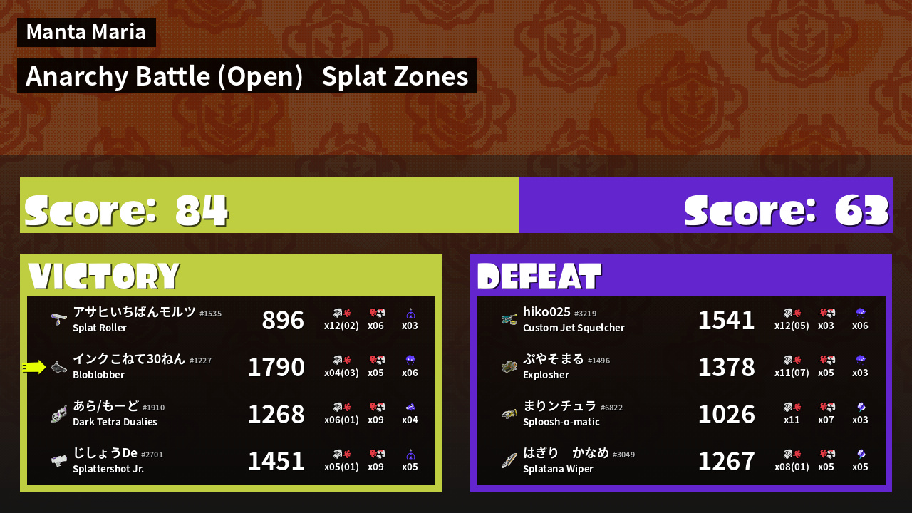 | Mode | Splat Zones - Anarchy Battle (Open) | ||