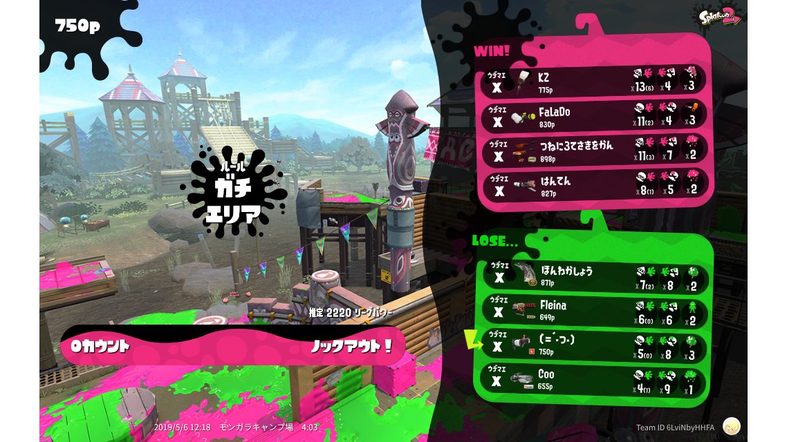 | Mode | Splat Zones - League Battle (Quad) | ||||||||||||||||