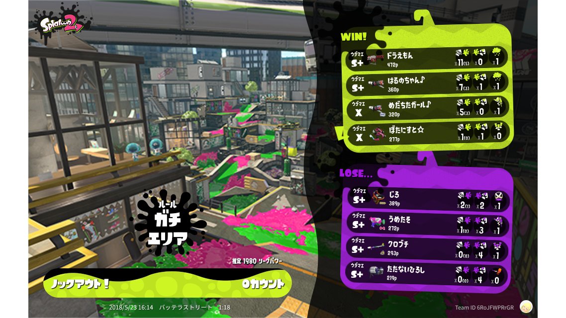 | Mode | Splat Zones - League Battle (Quad) | ||||||||||||||||||||||||||||