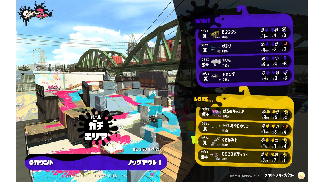 | Mode | Splat Zones - League Battle (Quad) | ||||||||||||||||||||||||||||||||||