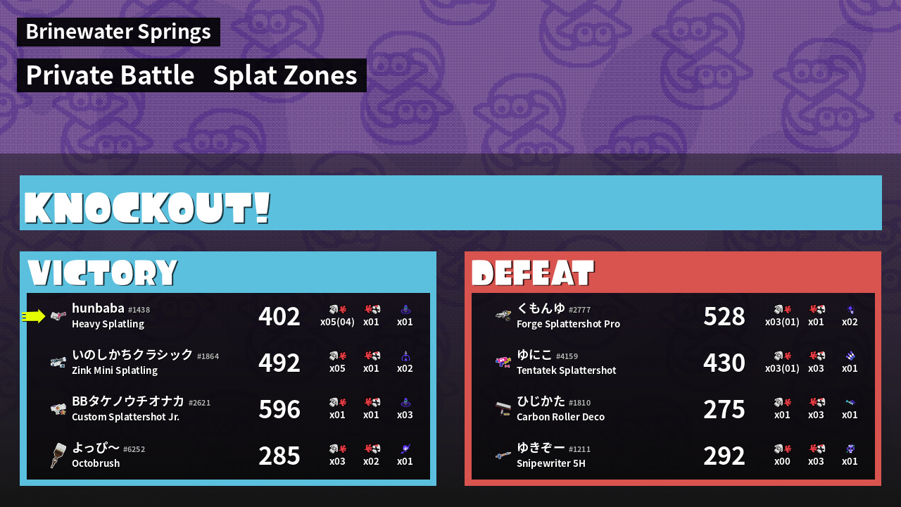 | Mode | Splat Zones - Private Battle | ||