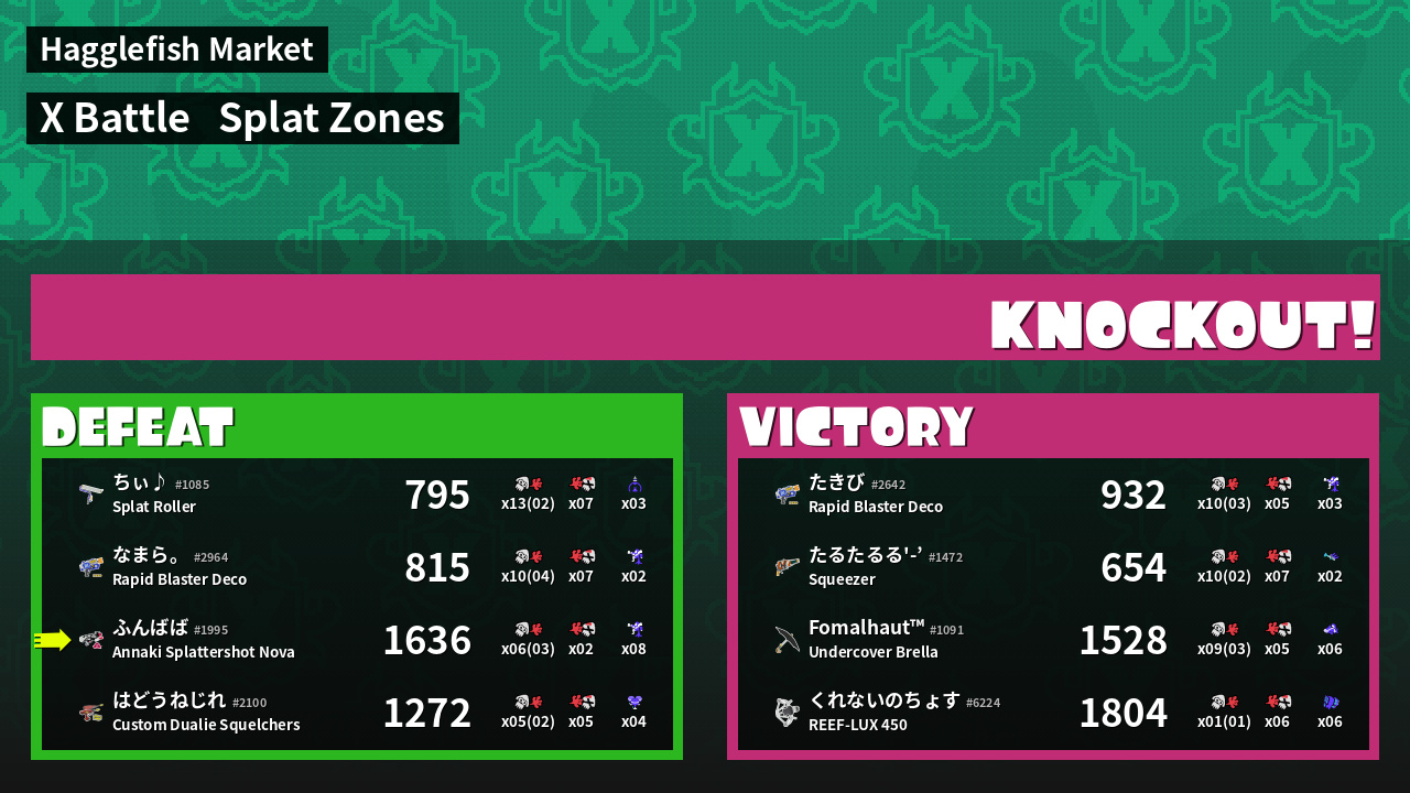 | Mode | Splat Zones - X Battle | ||