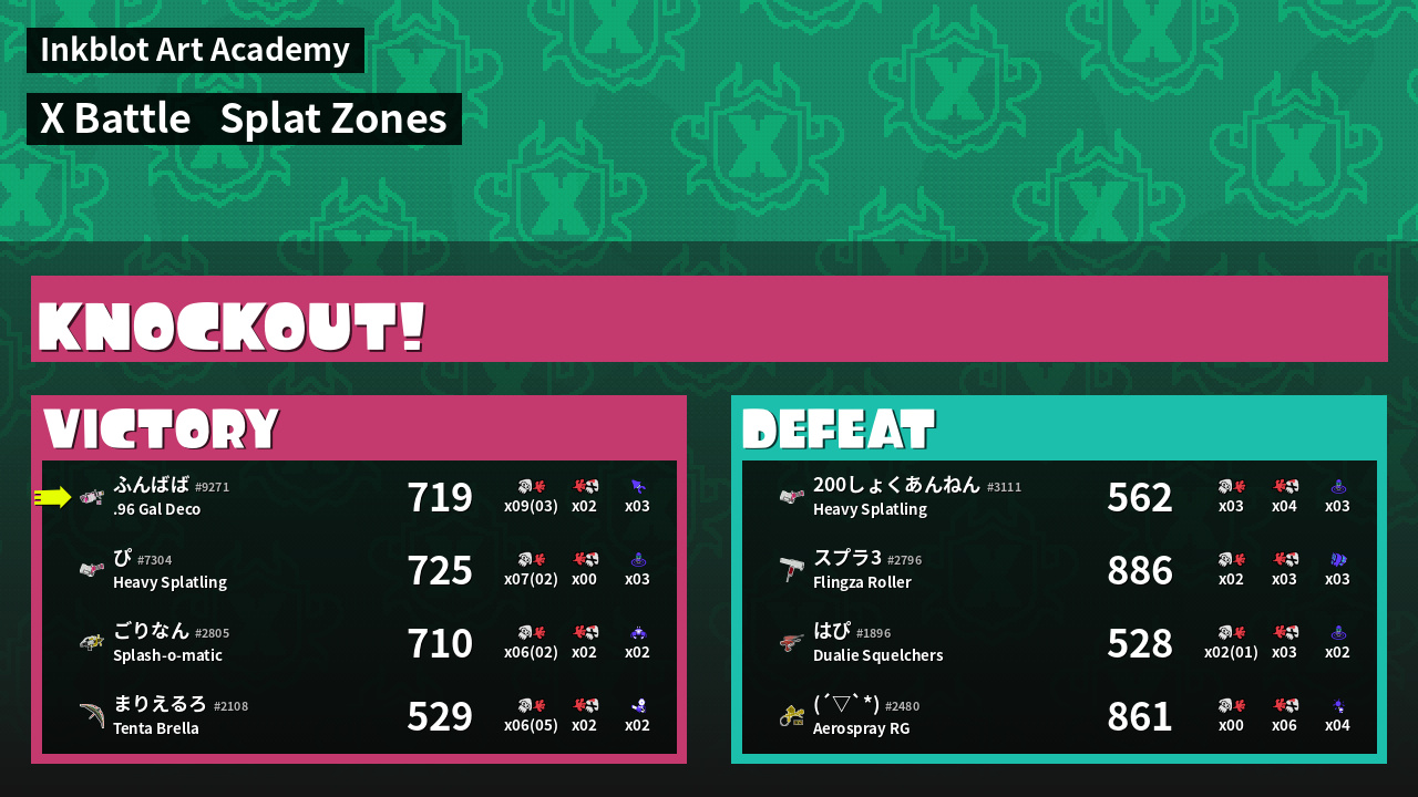 | Medals | #1 Overall Splatter #1 Splat Zone Guard #1 Popular Target | ||