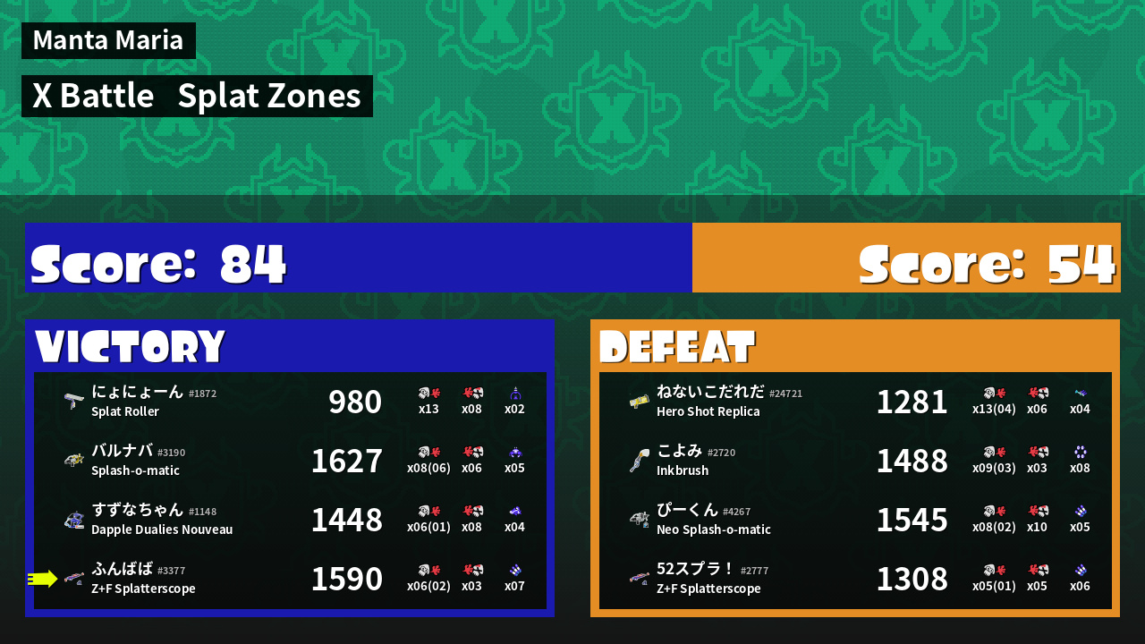 | Mode | Splat Zones - X Battle | ||