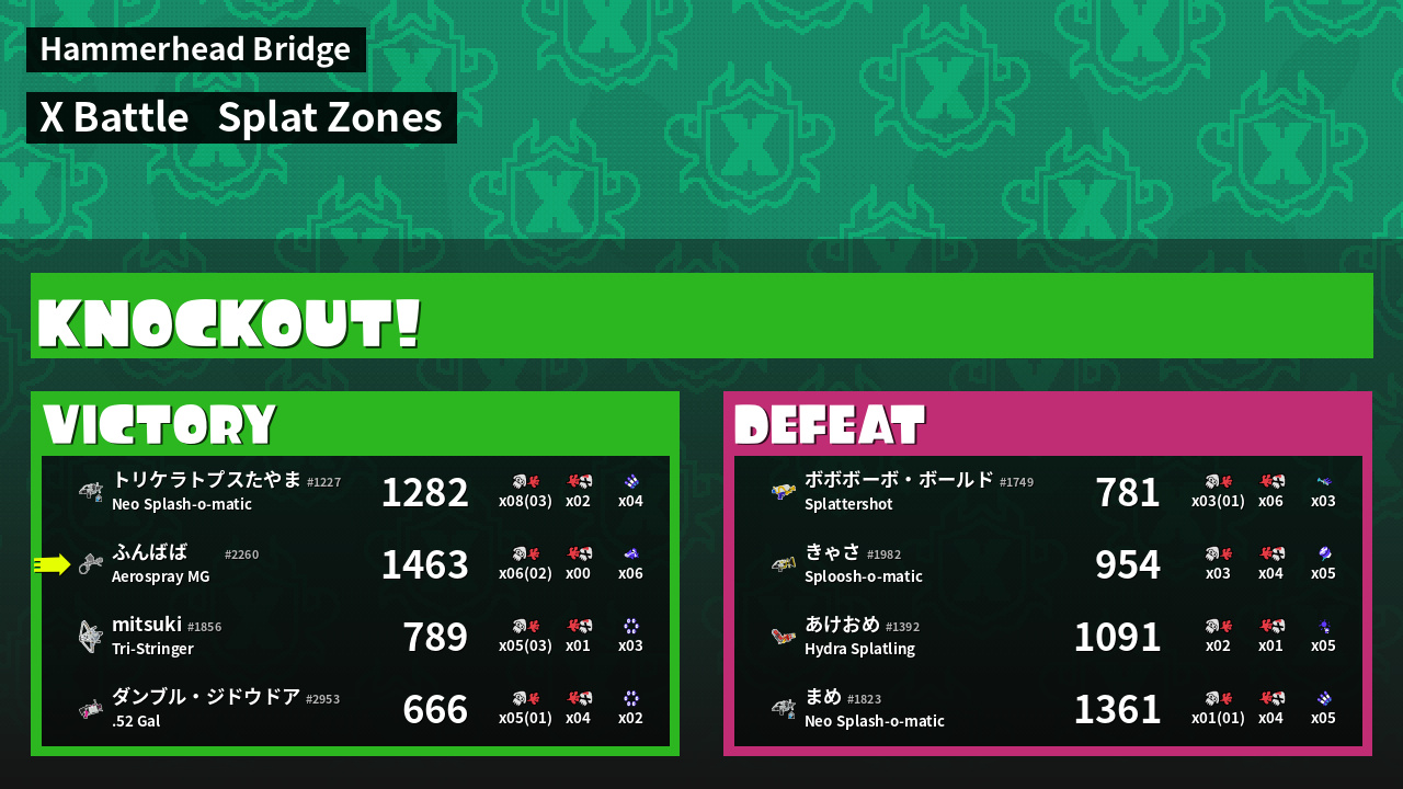 | Mode | Splat Zones - X Battle | ||