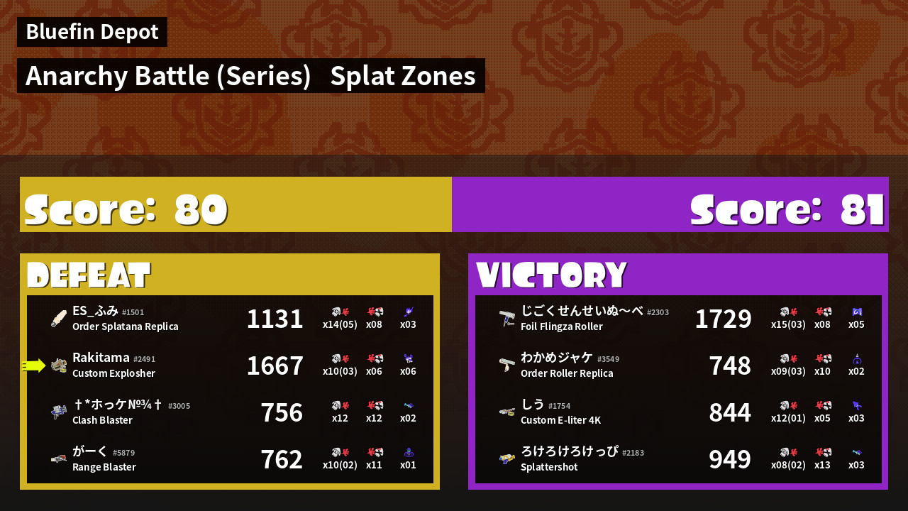 | Mode | Splat Zones - Anarchy Battle (Series) | ||