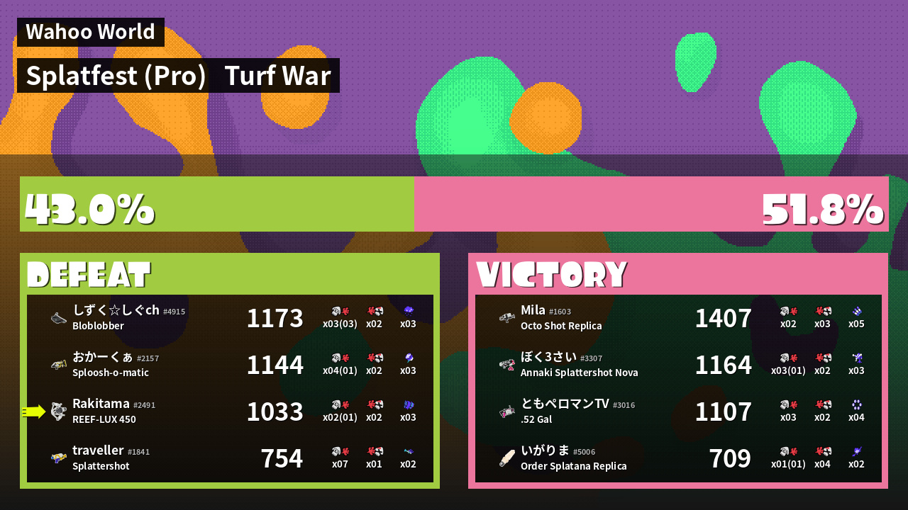 | Mode | Turf War - Splatfest (Pro) | ||