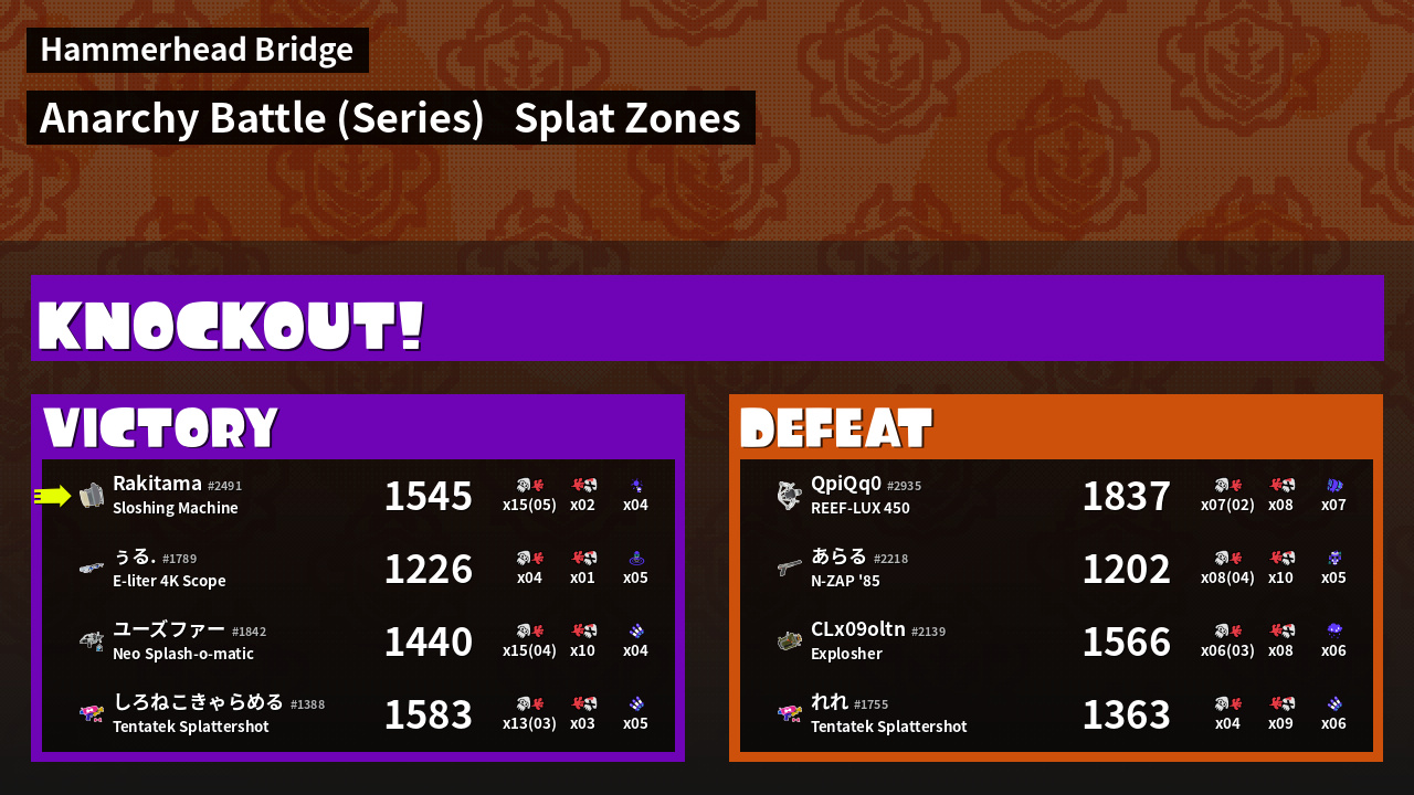 | Mode | Splat Zones - Anarchy Battle (Series) | ||