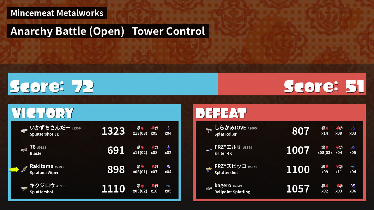 | Mode | Tower Control - Anarchy Battle (Open) | ||