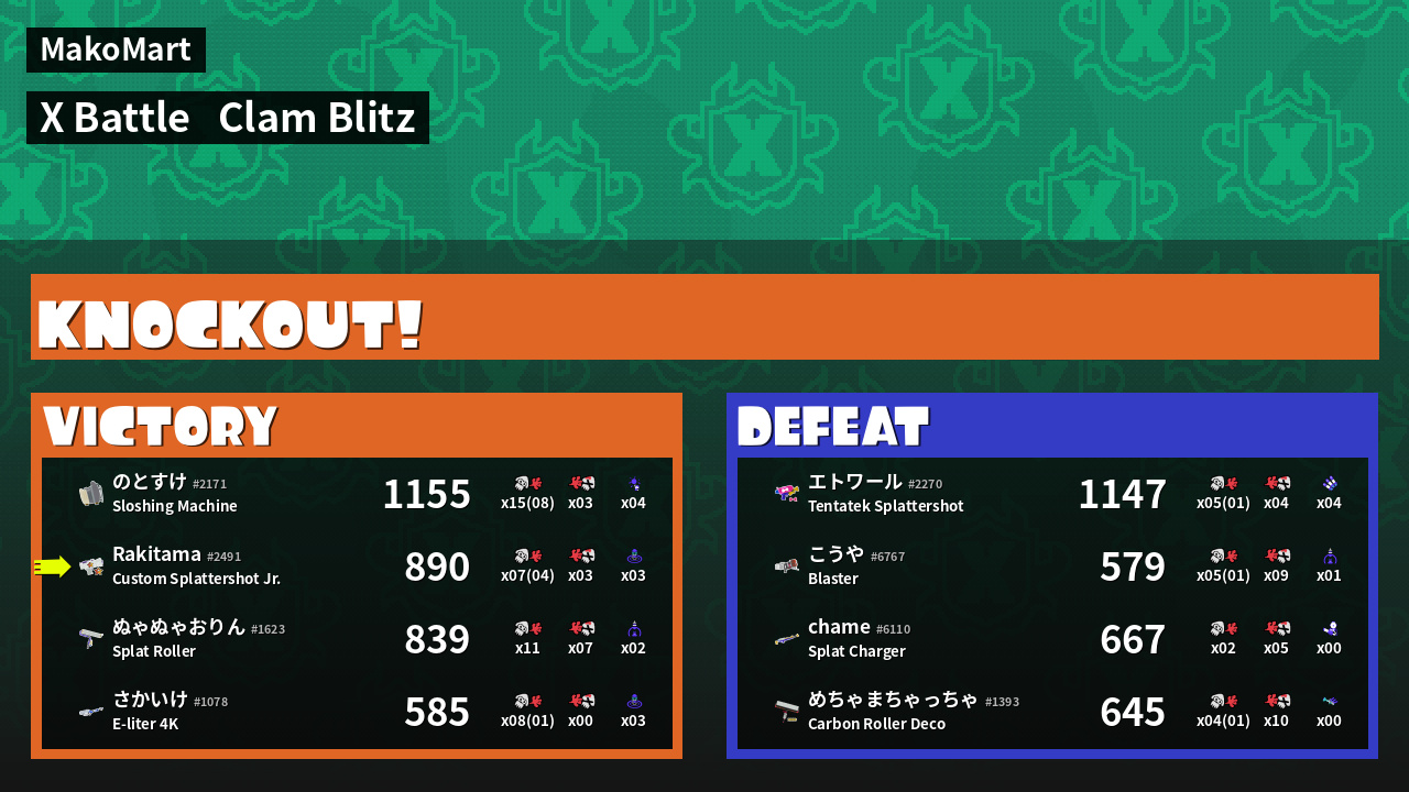| Mode | Clam Blitz - X Battle | ||