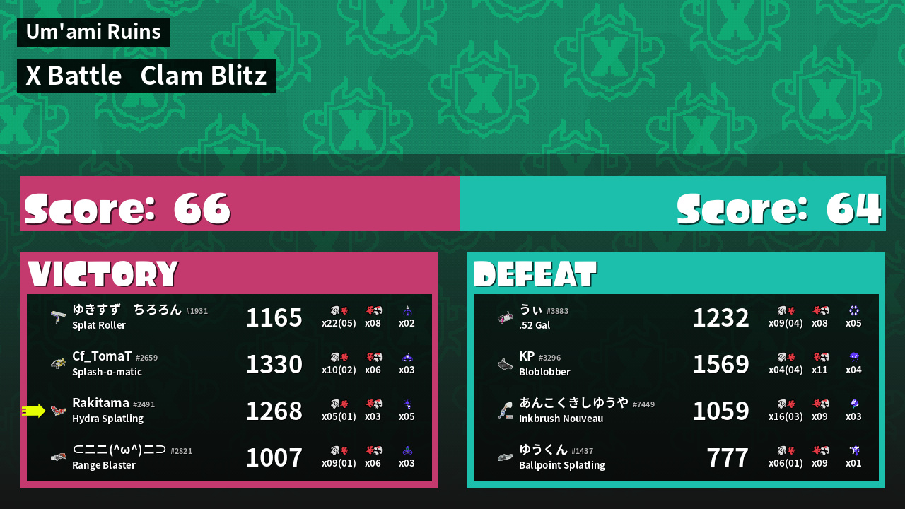 | Mode | Clam Blitz - X Battle | ||