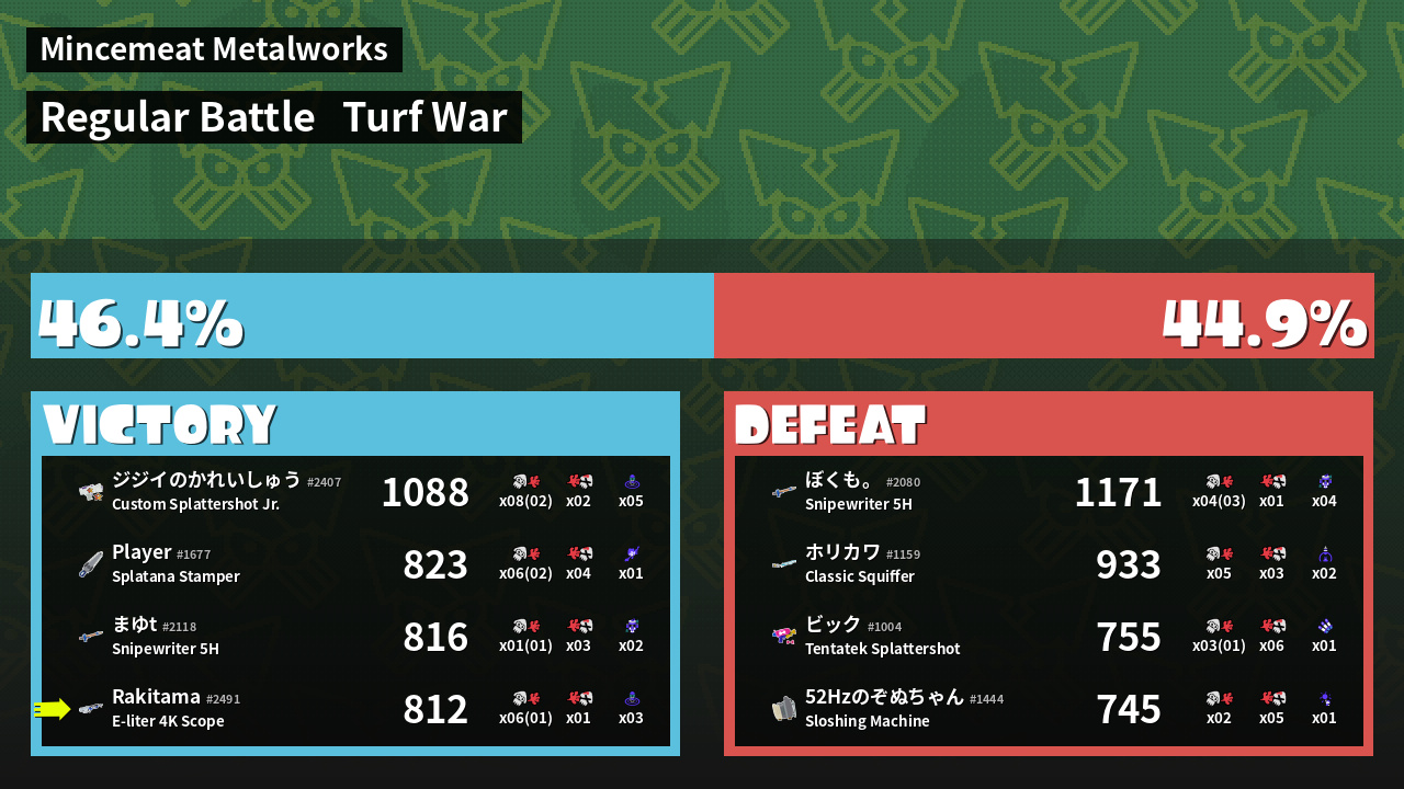 | Medals | #1 Wave Breaker User #2 Overall Splatter #2 Home-Base Inker | ||