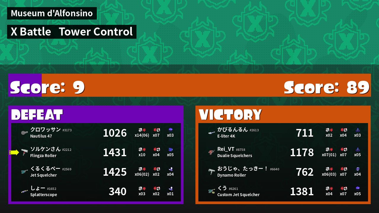 | Medals | #1 Turf Inker #1 Enemy Splatter #1 Tower Stopper | ||