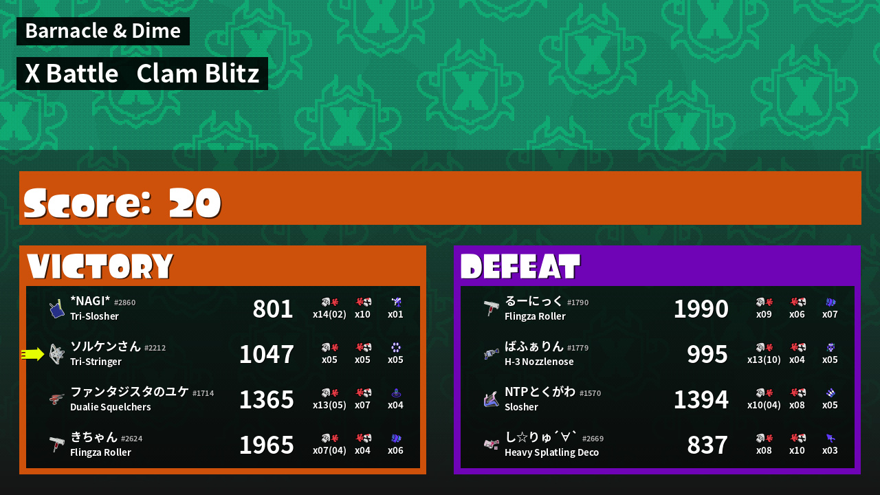 | Mode | Clam Blitz - X Battle | ||
