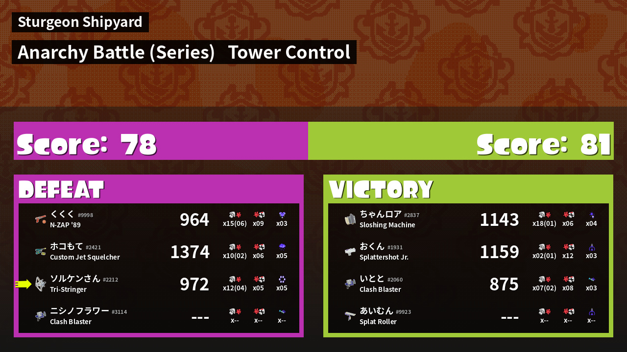 | Mode | Tower Control - Anarchy Battle (Series) | ||
