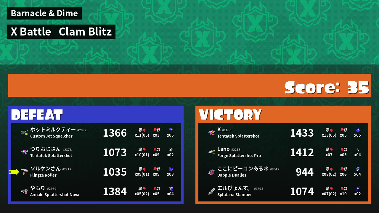 | Mode | Clam Blitz - X Battle | ||