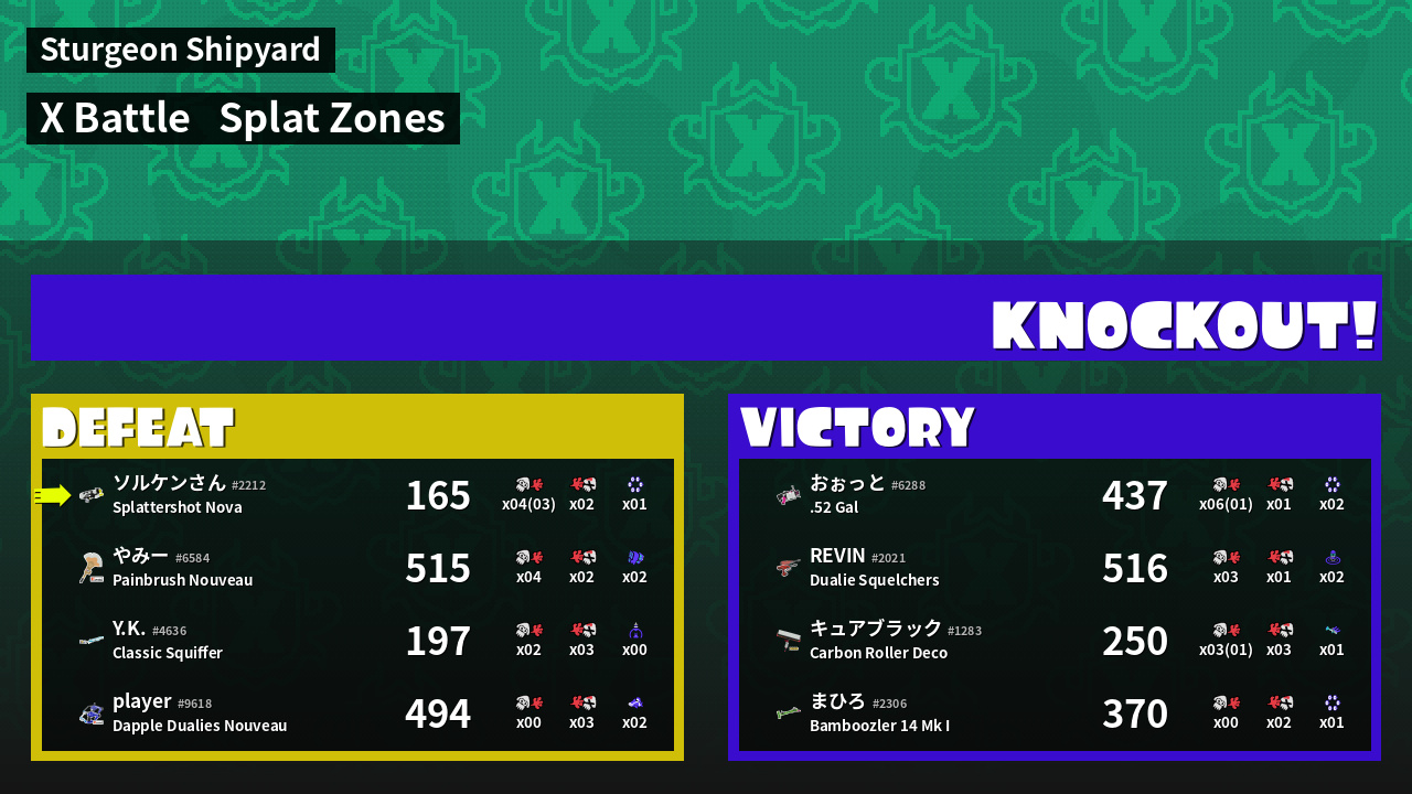 | Mode | Splat Zones - X Battle | ||