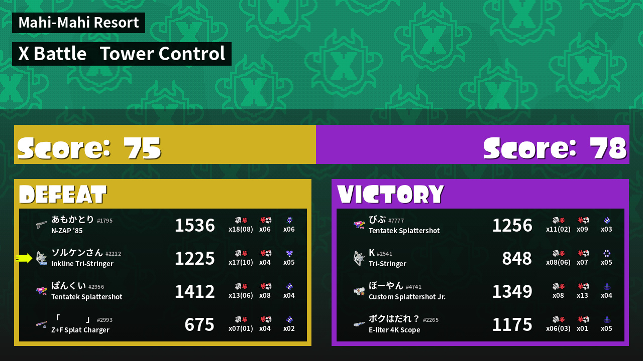 | Mode | Tower Control - X Battle | ||