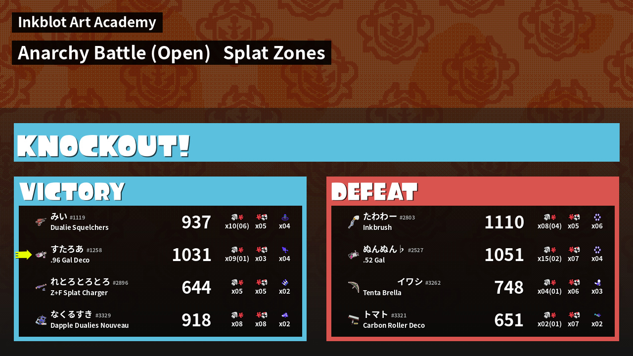 Name | Weapon | Inked | ![]() |