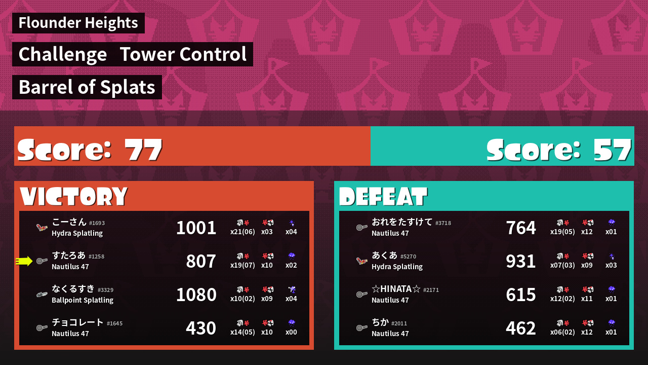 | Medals | Record-Score Setter #1 Popular Target #1 Splat Assister | ||