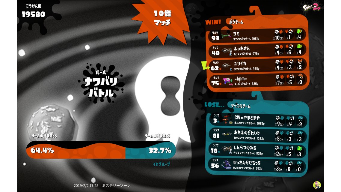| Splatfest Title | ボケ Fiend 80 → ボケ Fiend 170 | |||||||||||||||||||||||||||||||