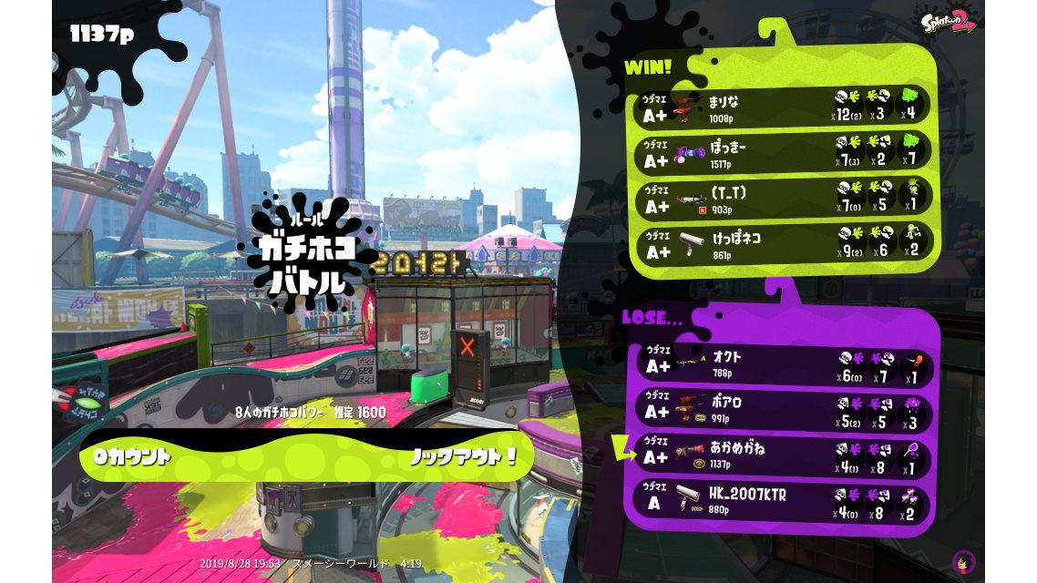 | Name | Weapon | Level | Rank | Inked | k+a/sp | k/d |