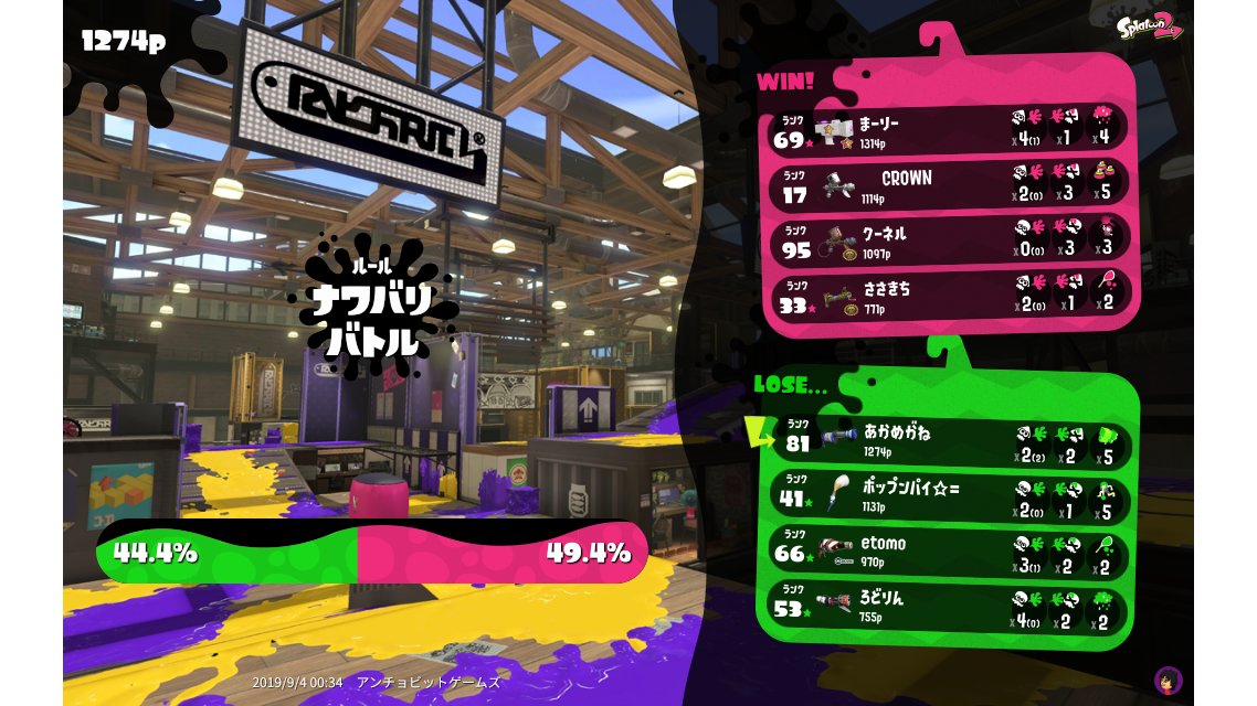 | Mode | Turf War - Regular Battle | |||||||||||||||||||||||||||||||||||||