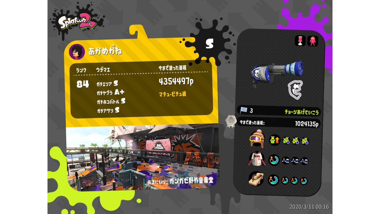 | Name | Weapon | Level | Rank | Inked | k+a/sp | k/d |