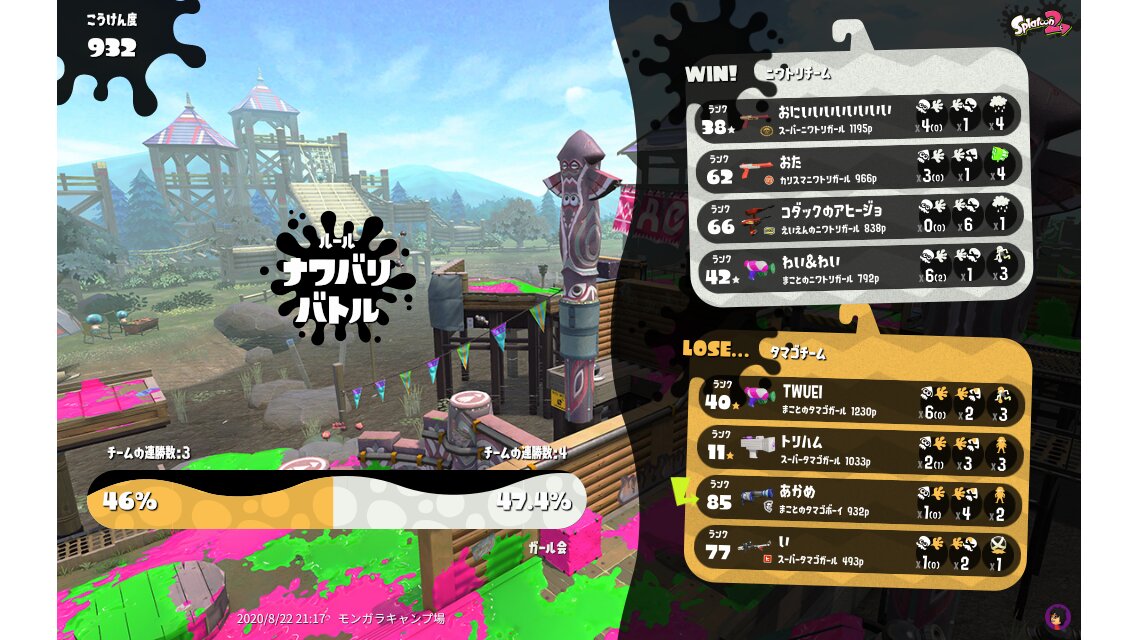 | Splatfest Title | タマゴ Fiend 203 → タマゴ Fiend 223 | |||||||||||||||||||||||||||||||