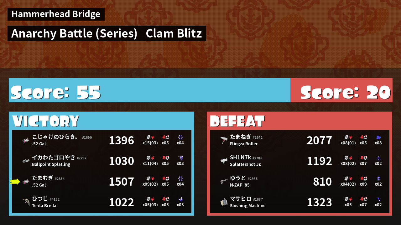 | Mode | Clam Blitz - Anarchy Battle (Series) | ||
