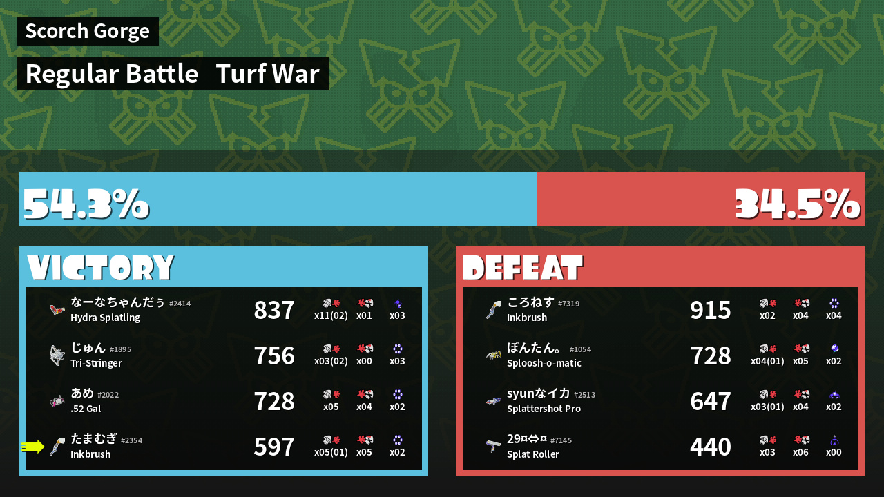| Mode | Turf War - Regular Battle | ||