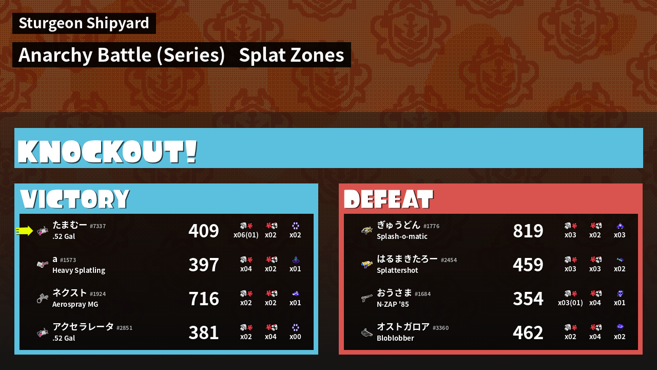 | Mode | Splat Zones - Anarchy Battle (Series) | ||