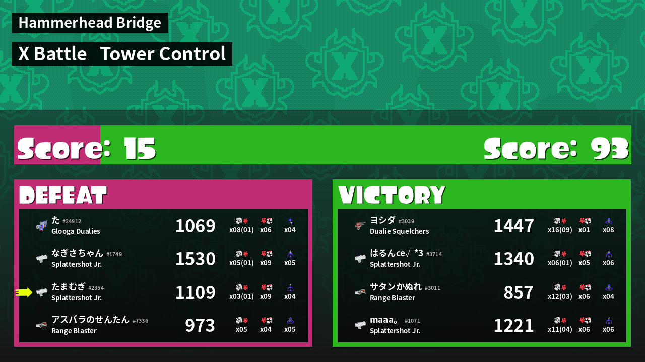 | Mode | Tower Control - X Battle | ||