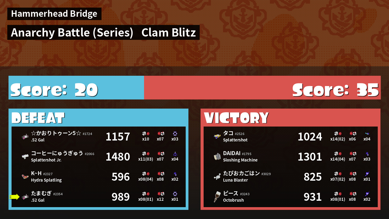 | Mode | Clam Blitz - Anarchy Battle (Series) | ||