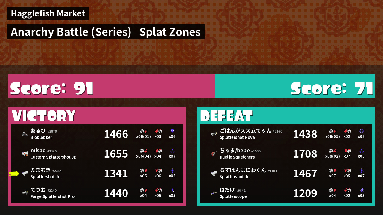 | Mode | Splat Zones - Anarchy Battle (Series) | ||
