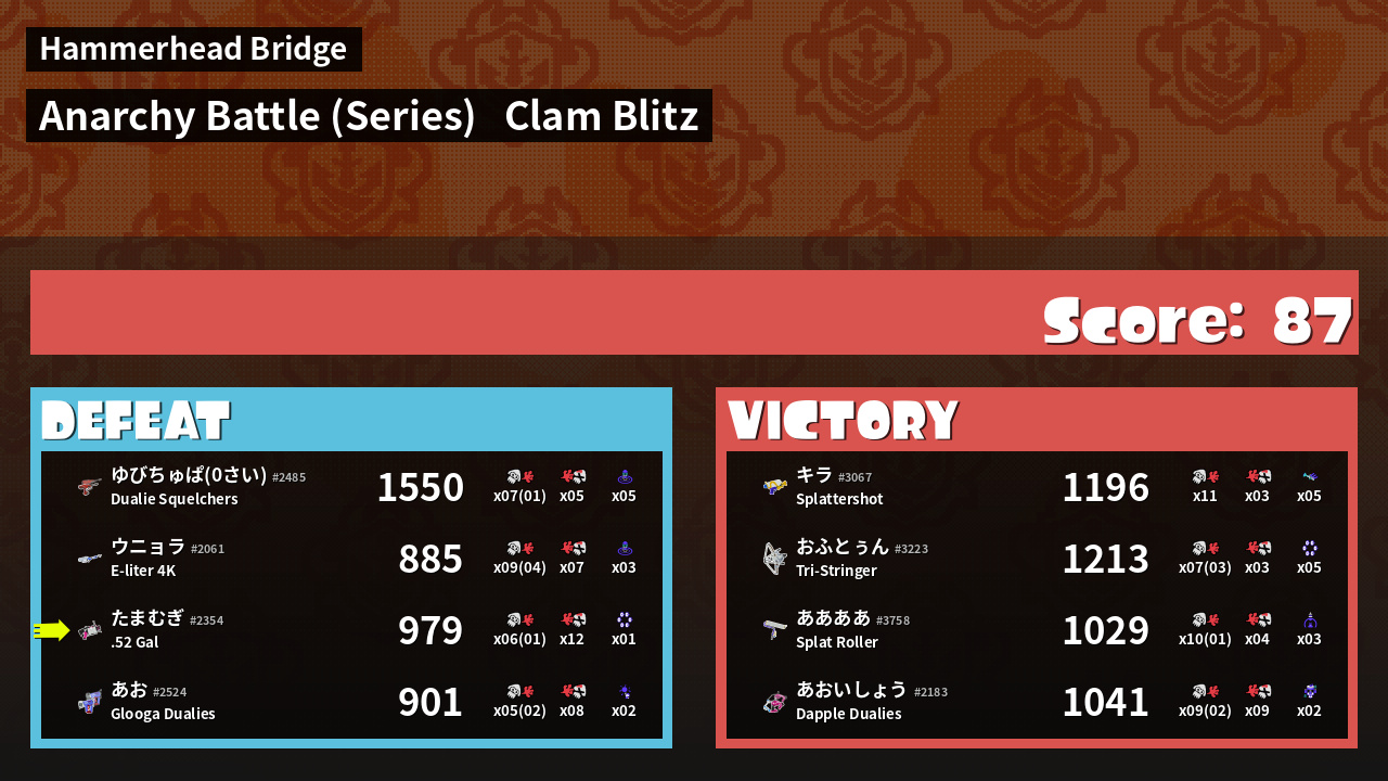 | Medals | #1 Clam Carrier #2 Turf Inker #2 Enemy Splatter | ||