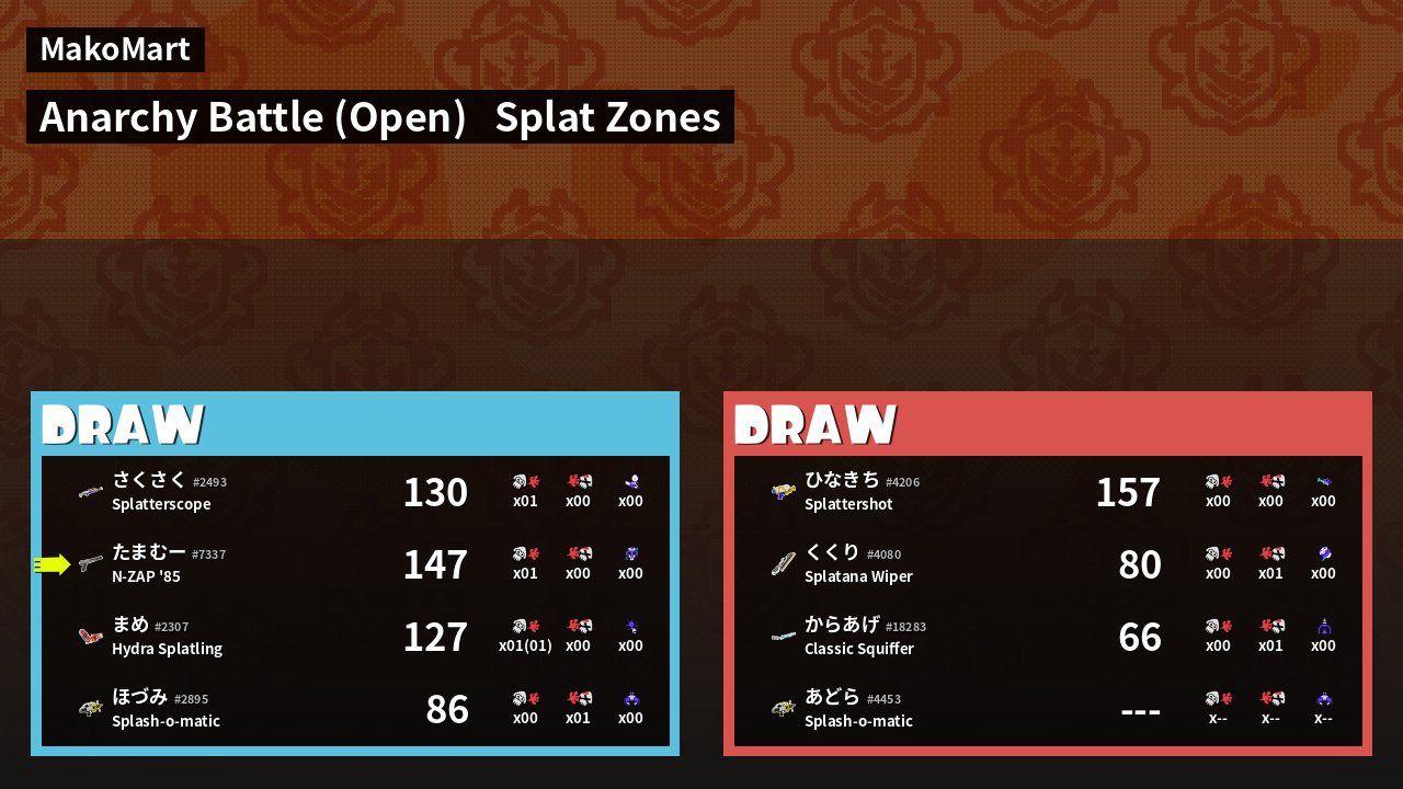 | Mode | Splat Zones - Anarchy Battle (Open) | ||