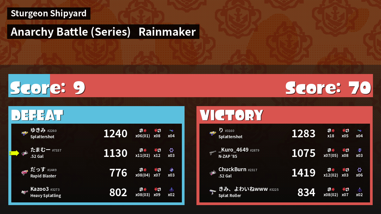 | Medals | #1 Overall Splatter #1 Enemy Splatter #1 Rainmaker Carrier | ||