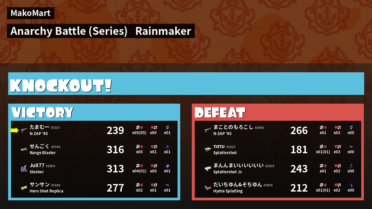 | Mode | Rainmaker - Anarchy Battle (Series) | ||