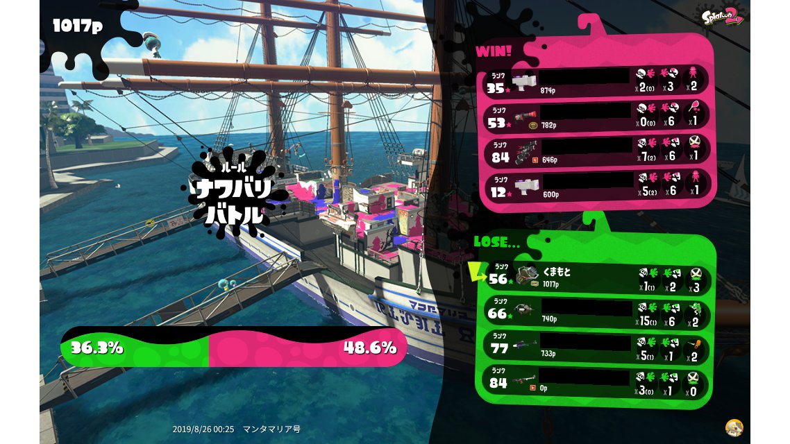 | Mode | Turf War - Regular Battle | ||||||||||||||||||||||||||||||||||