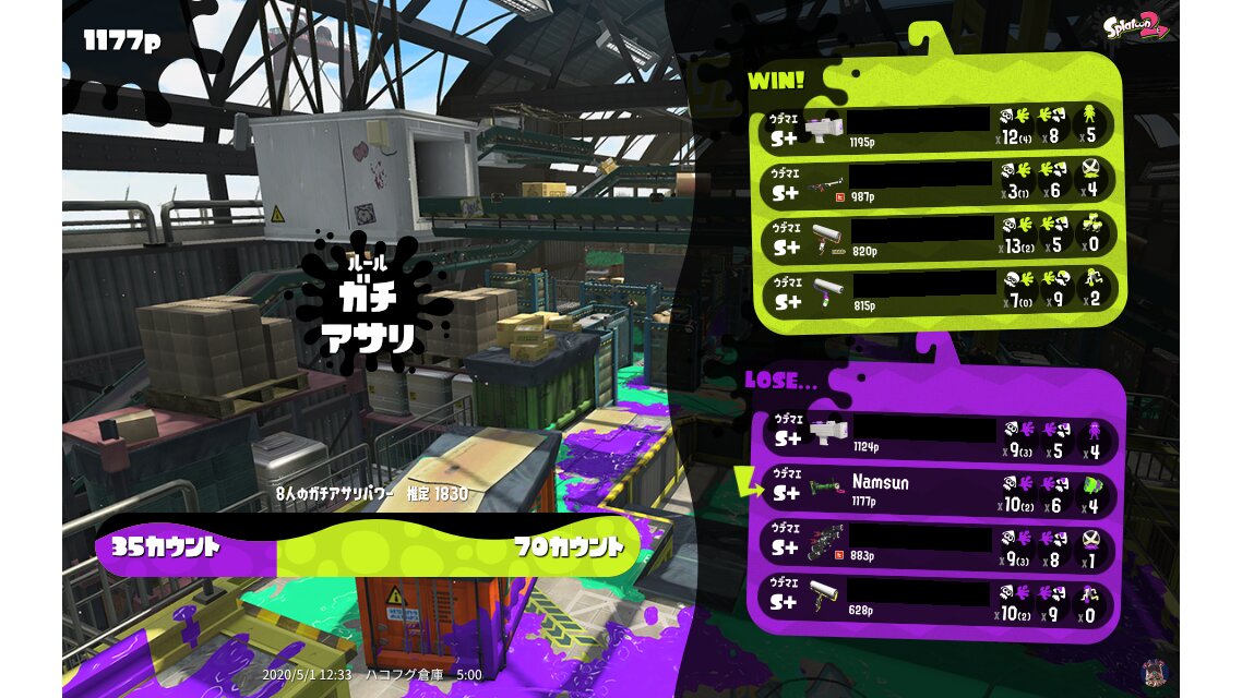 | Name | Weapon | Level | Rank | Inked | k+a/sp | k/d |