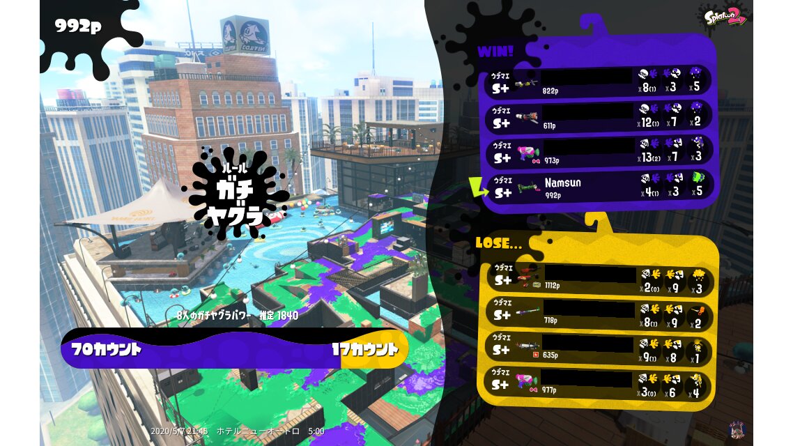 | Name | Weapon | Level | Rank | Inked | k+a/sp | k/d |