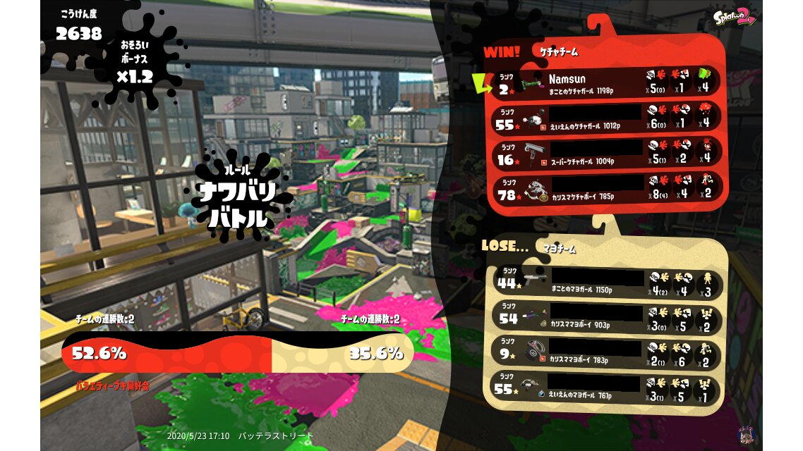 | Team ケチャ バラエティーブキ同好会 Win Streak: 2 | 3,999 | 19 / 8 | 2.38 70.37% | ||||