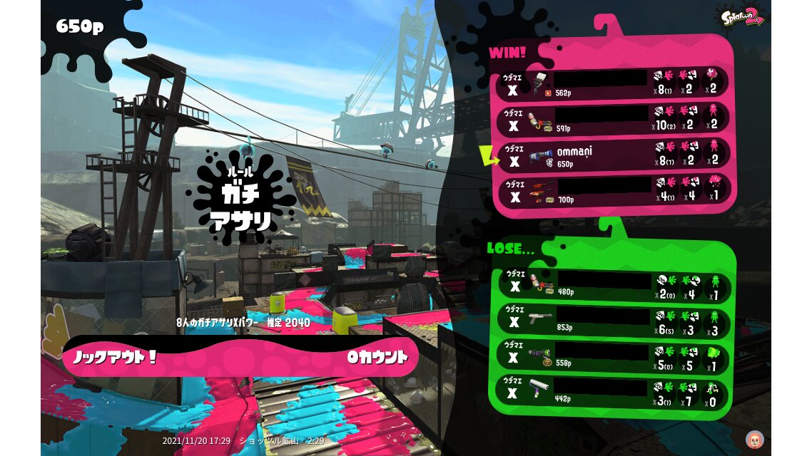 | Name | Weapon | Level | Rank | Inked | k+a/sp | k/d |