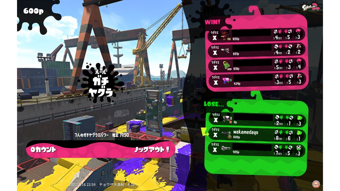 | Name | Weapon | Level | Rank | Inked | k+a/sp | k/d |