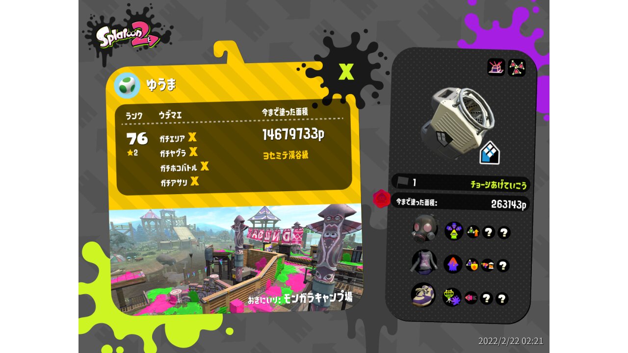 | Weapon | Sloshing Machine Neo ( Point Sensor, Splat-Bomb Launcher) | ||||||||||||||||||||||||||||||||||||||||