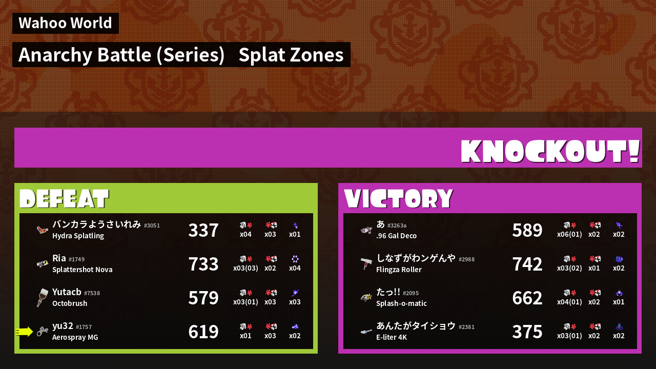 | Mode | Splat Zones - Anarchy Battle (Series) | ||
