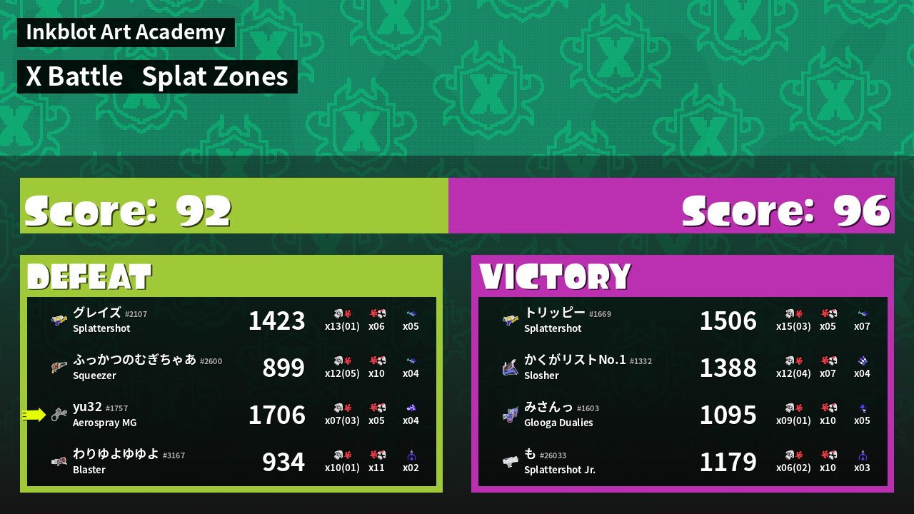 | Medals | #1 Splat Zone Inker #1 Turf Inker #1 Splat Zone Hero | ||